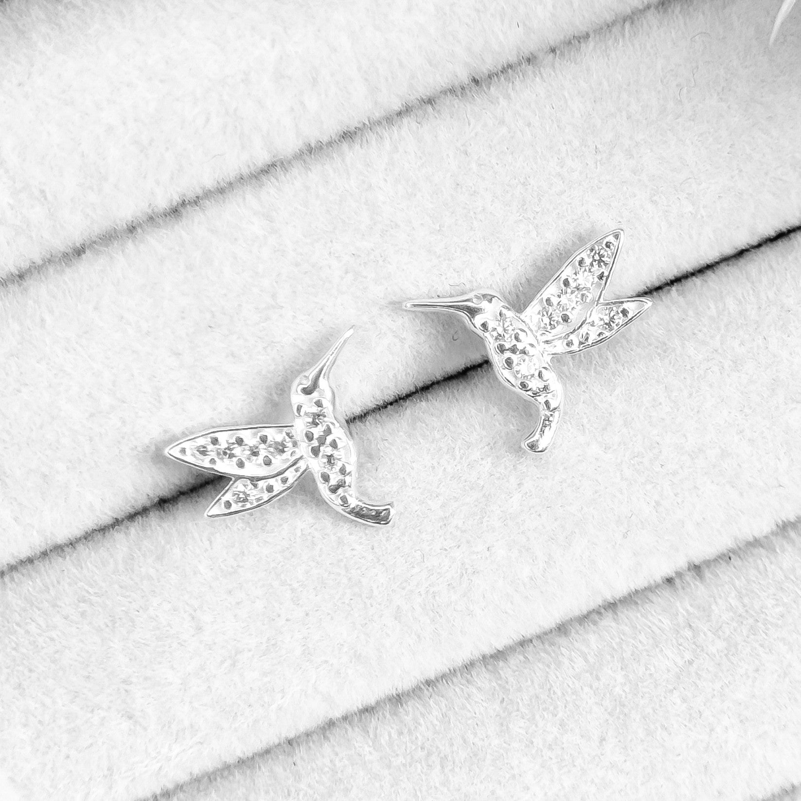 BRINCO BEIJA FLOR NA PRATA 925 CRAVEJADO